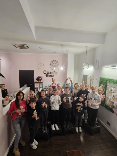 Dziś uczniowie klasy 4a wybrali się na wyjątkową wycieczkę do Opola! Najpierw odwiedziliśmy Panią Karmelarz, gdzie dzieci poznały tajniki tworzenia karmelu, lizaków i cukierków. Każdy mógł spróbować swoich sił w roli małego cukiernika, a na koniec zrobić pamiątkowe zdjęcie i zdobyć autograf od znanej w sieci Pani Karmelarz — gwia