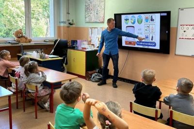 • Przedszkolaki z Przedszkola Publicznego Nr 4 na zajeciach przyrodniczych w Szkole Podstawowej Nr 1