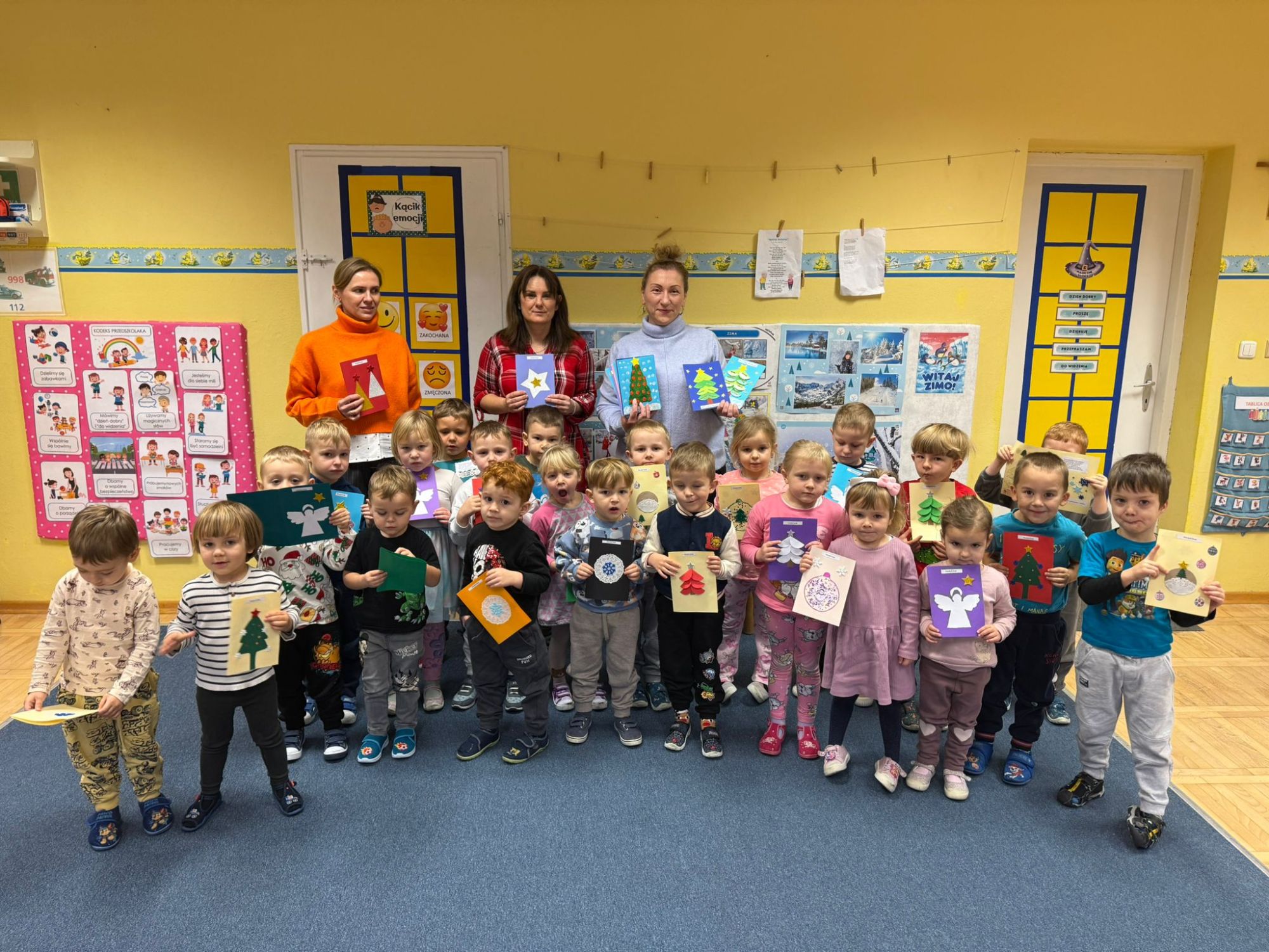 W naszym przedszkolu odbyło się wyjątkowe, pełne radości i wzruszeń świąteczne spotkanie, którego inicjatorką była Pani Dominika Gerlich. Dziesiątego grudnia gościliśmy dzieci z Przedszkola Publicznego Nr 5 w Krasiejowie, które przyjechały do nas, by wspólnie poczuć magię nadchodzących Świąt Bożego Narodzenia.