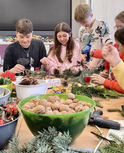 W naszej świetlicy zapanował prawdziwie magiczny, świąteczny klimat! Uczniowie, pełni energii i radosnego zapału, wzięli udział w wyjątkowych warsztatach bożonarodzeniowych zorganizowanych przez Samorząd Uczniowski.